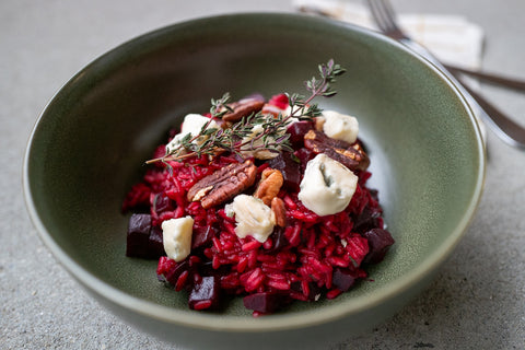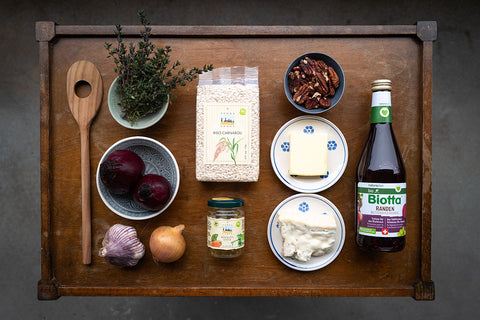 Herzhaft, aromatisch, sinnlich: Der Randen-Thymian-Risotto mit Gorgonzola und gerösteten Nüssen ist wie eine warme, kulinarische Umarmung, der mit seiner intensiven Farbe auch das Auge erfreut. Die süssliche Rande, der aromatische Thymian, die Röstnoten der Nüsse und die Würze des Gorgonzolas vereinen sich zu einer Harmonie der Aromen. Ein schönes Gericht für die kalte Jahreszeit oder an kühlen, trüben Tagen.